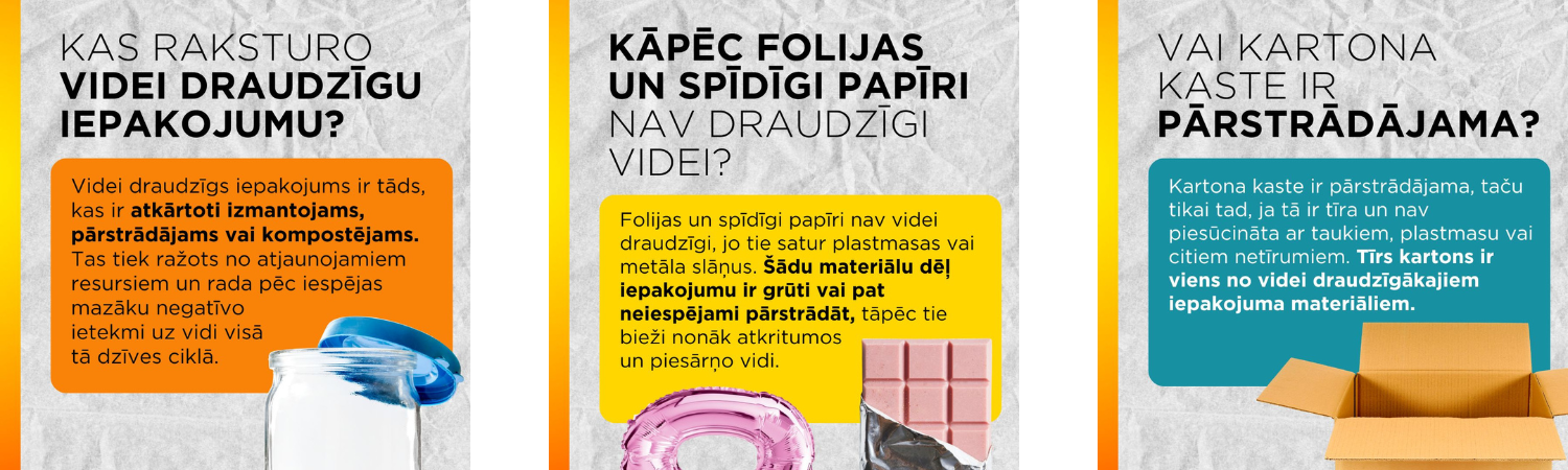 Skolēni pētīja, kas patiesībā raksturo videi draudzīgu iepakojumu un kāpēc ne viss, kas izskatās skaists un spīdīgs, ir labs dabai. Atbildēs tika meklēti skaidrojumi, kāpēc folija un spīdīgie papīri rada problēmas pārstrādē, kad kartona kaste patiešām ir pārstrādājama un kā svētkos var iztikt bez jaunu iepakojumu iegādes. Jaunieši tika mudināti uz ideju par atkārtotu iepakojumu un priekšmetu izmantošanu dāvanu saiņošanā.