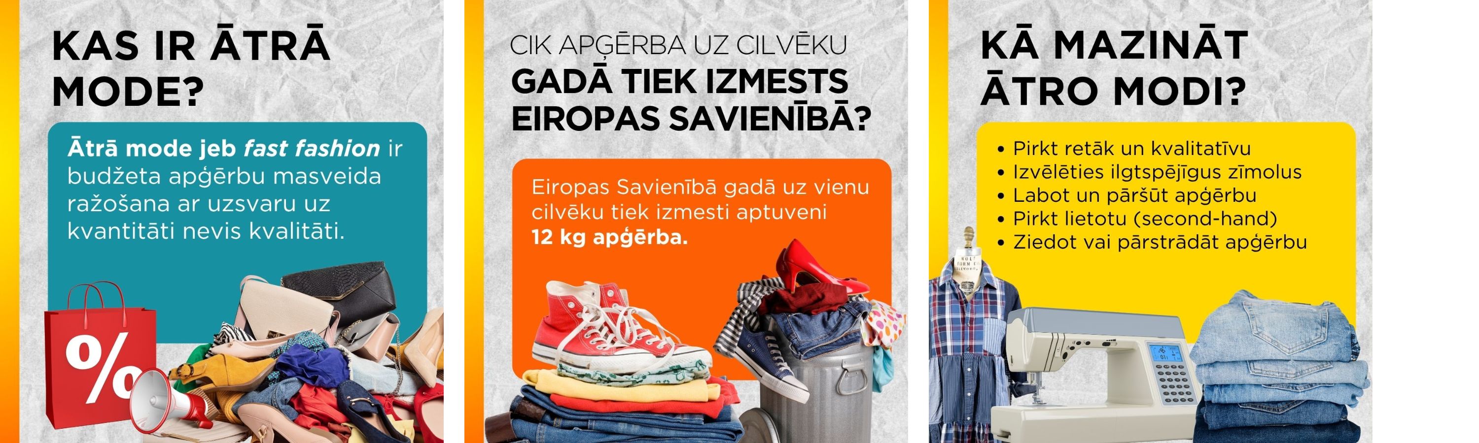 Dalībnieki arī aktīvi dalījās ar idejām, kā samazināt ātrās modes ietekmi. Kā viena no interesantākajām atbildēm izcēlās ieteikums ziedot apģērbu tiem, kam tas nepieciešams, piemēram, nododot to vietējās iniciatīvās kā “Gūt var dot”. Tāpat tika uzsvērta ideja radīt jaunu modi, pārveidojot vecos apģērbus un piešķirot tiem otro dzīvi.