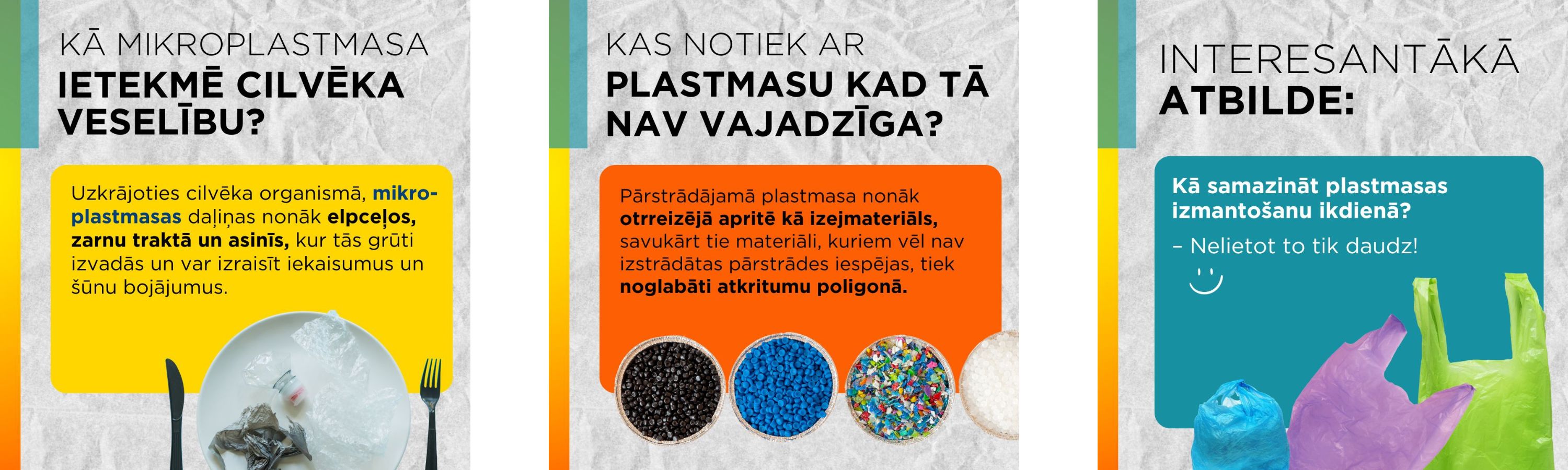 Dalībniekiem bija jāatbild uz jautājumiem par mikroplastmasas ietekmi uz cilvēka organismu, par to, kas notiek ar plastmasu pēc tās izmešanas un kā mēs paši varam samazināt plastmasas lietošanu.
